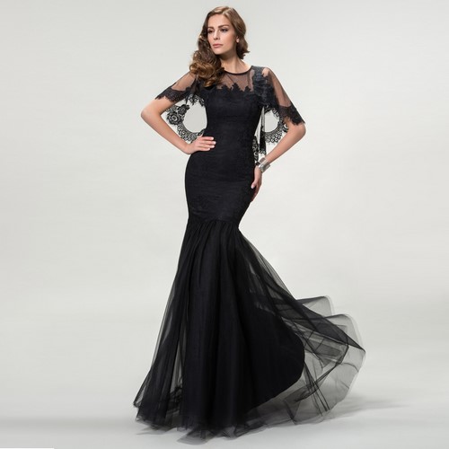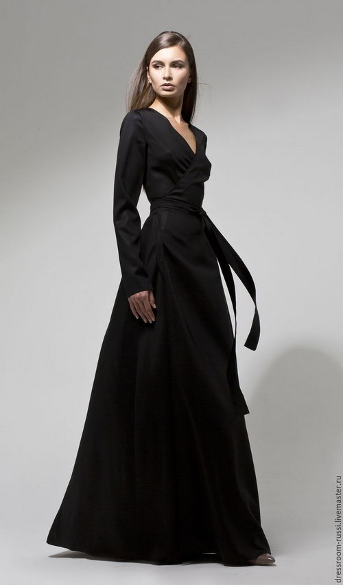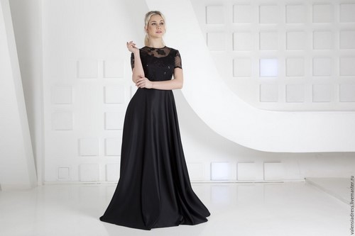 Des robes noires sensuelles au sol à la manière d'un poisson, droites, fourrées et avec une jupe ample permettront à une femme d'avoir l'air chic, en se concentrant sur la silhouette impeccable et gracieuse.