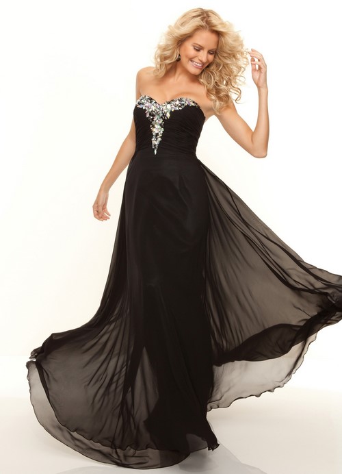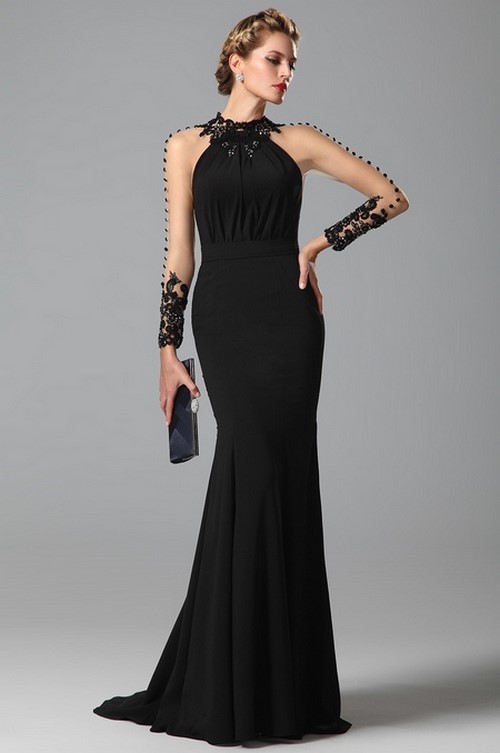 Des robes de soirée noires impeccables raviront les modeuses en leur donnant l’occasion de créer l’image chic d’une dame séduisante et inimitable.