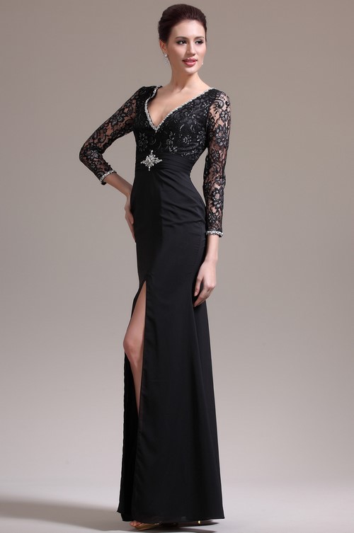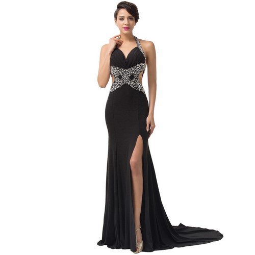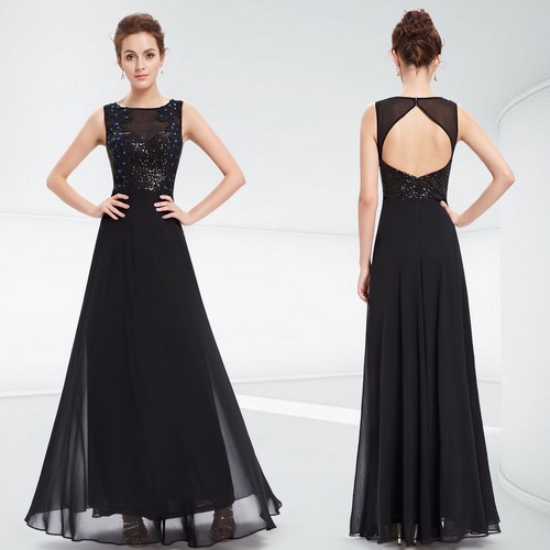 De belles robes noires sur le sol 2025-2026 ne peuvent se passer d'un style avec un décolleté profond et un dos ouvert. Ces robes noires auront un look très chic et coûteux.