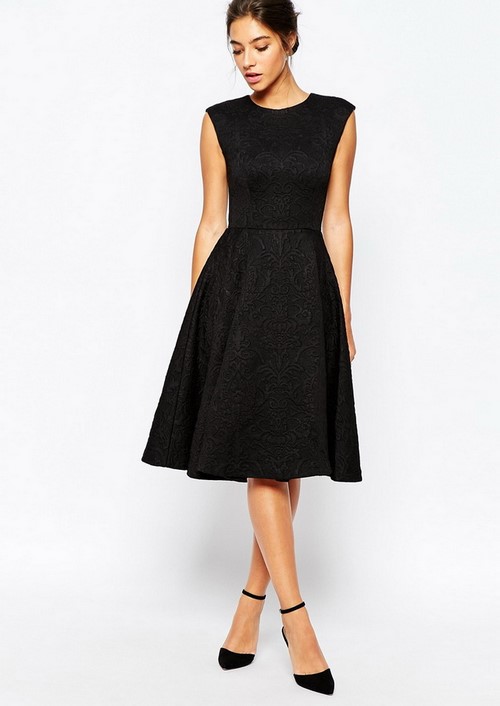 Les robes noires à la mode avec longueur midi sont ces tenues universelles qui sont maintenant au sommet de leur popularité.