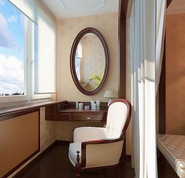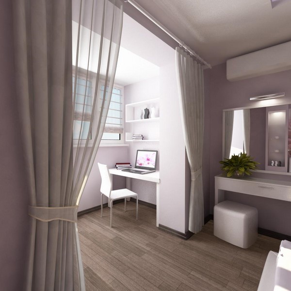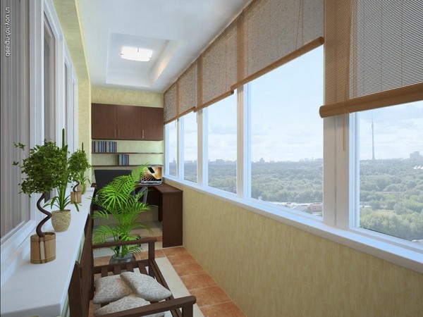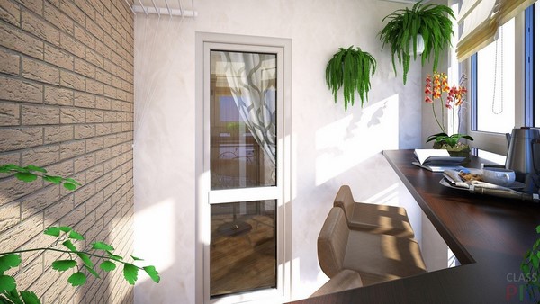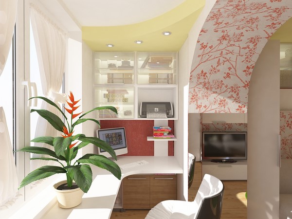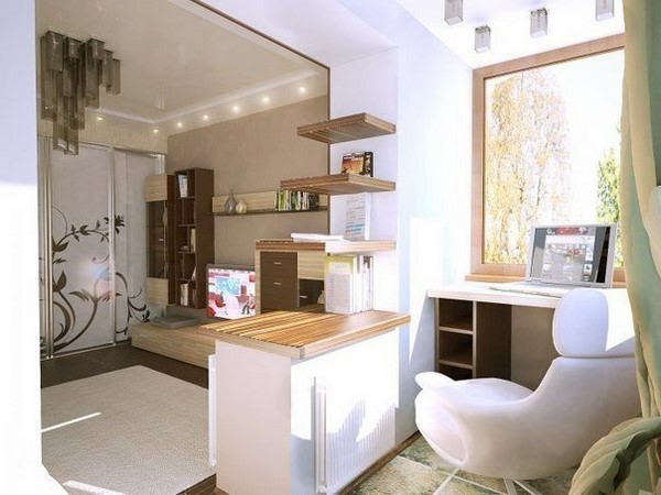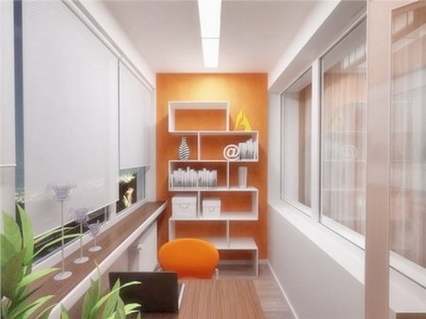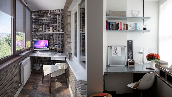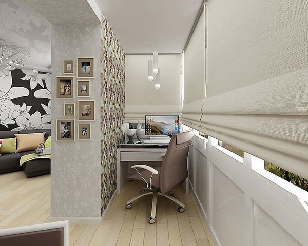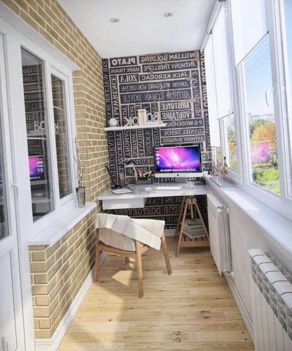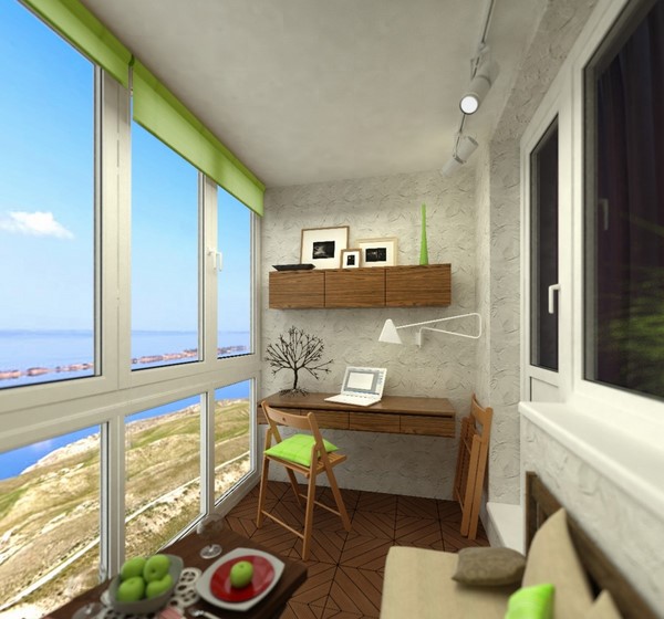 Comme nous l'avons déjà dit, l'intérieur du balcon est situé sur plusieurs mètres carrés, un bureau est une solution idéale pour cette partie de l'appartement.