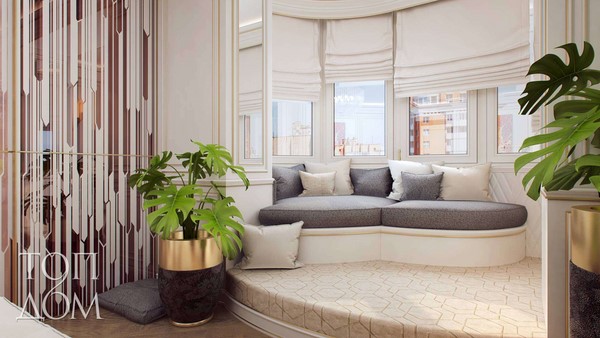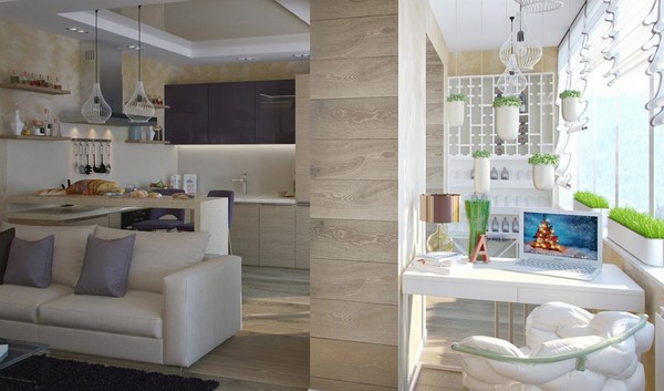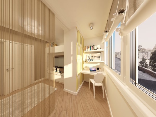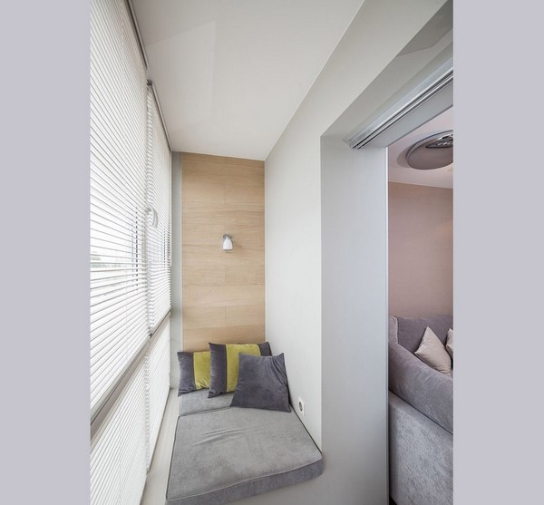 La conception originale du balcon et de l'intérieur de la loggia permet de transformer cette partie de l'appartement en une chambre confortable, une petite chambre d'enfants, un bureau, un espace de détente et même une cuisine.