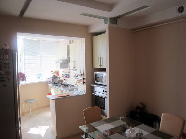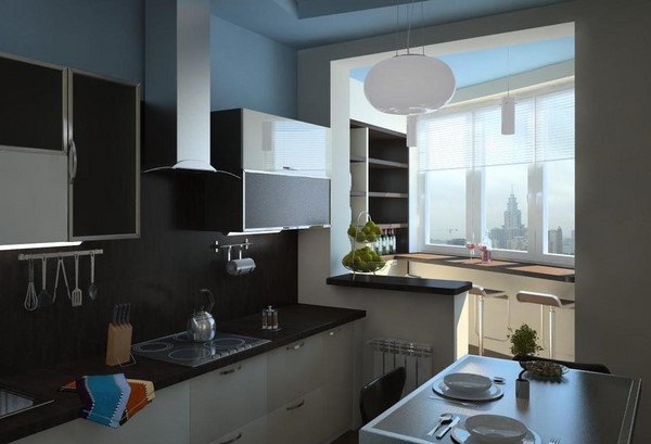 L'intérieur de la loggia-salle à manger sera très organique. Et si la cuisine est connectée à la loggia à l'aide de structures en plaques de plâtre, vous pouvez facilement les équiper sous les étagères d'origine, ce qui améliorera considérablement l'intérieur de la loggia-salle à manger.