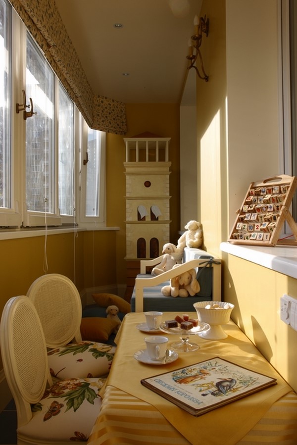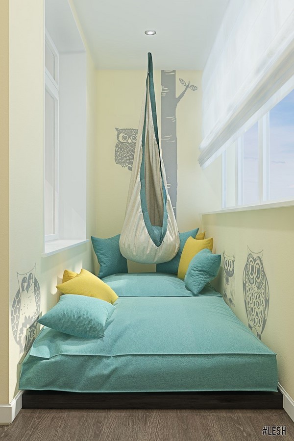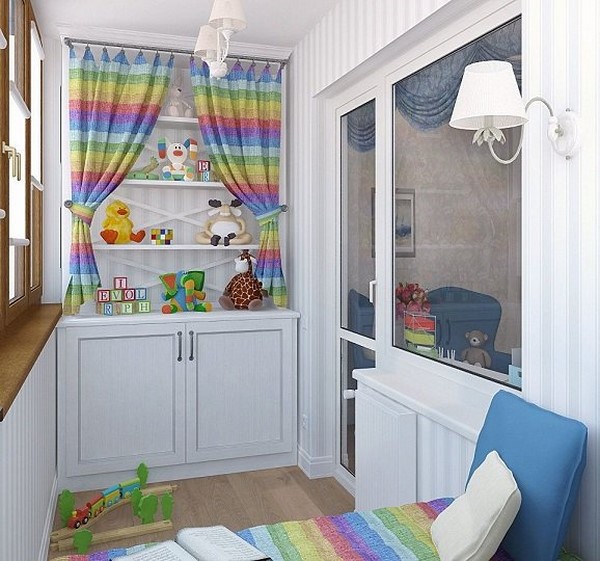 Quelqu'un dira qu'il n'y a pas assez de place pour un enfant ... Mais lorsque l'appartement est très petit ou que les chambres sont occupées, la conception d'un balcon pour un enfant est une option tout à fait acceptable.