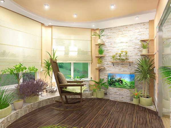 Très souvent, vous voulez trouver une place dans l'appartement où vous pouvez être seul en silence. L'intérieur de la loggia et le balcon sous un petit jardin d'hiver peuvent devenir un tel lieu pour tous les résidents de la maison.