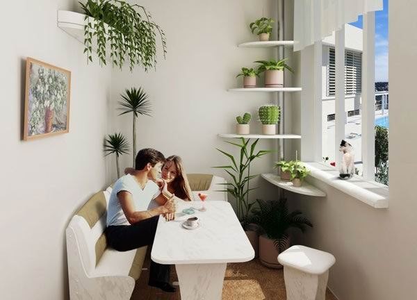 En fait, quelques mètres d'un balcon peuvent devenir une pièce à part entière ou une partie d'une pièce où vous pouvez faire presque tout ce dont vous avez besoin dans la maison. En clair, dans une petite version.