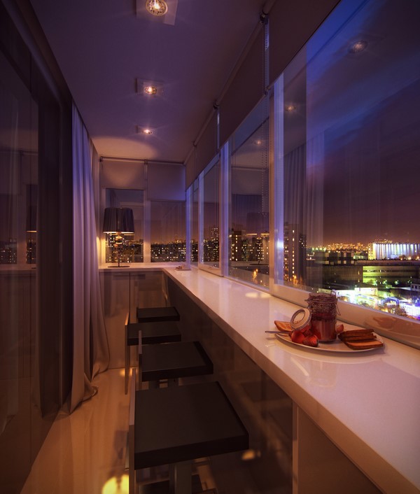 La première réponse, comment équiper un balcon ou une loggia, sera de créer un design de balcon qui traduira fonctionnellement et visuellement l’atmosphère de votre bureau.