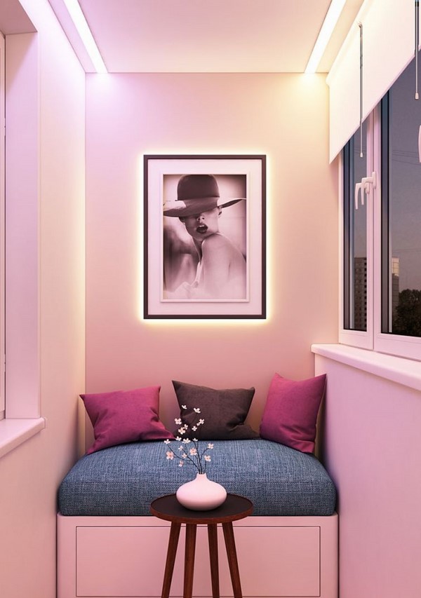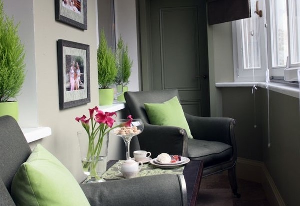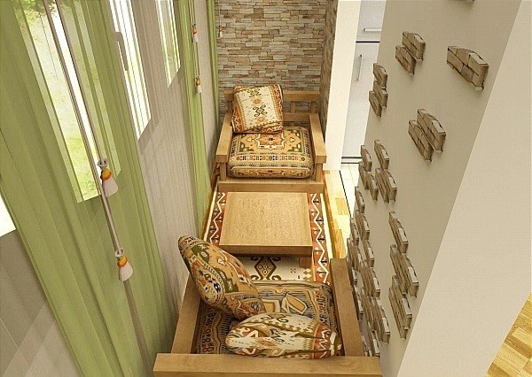 En plus des fleurs qui décorent le design du balcon ou de l'intérieur de la loggia, prenez soin de l'espace de détente, où vous pourrez jouir de la paix et du confort à la fois seul et en compagnie d'un être cher.