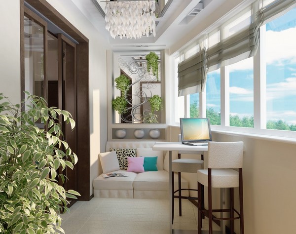 Comment équiper un balcon ou une loggia: l'intérieur de la loggia sous l'atelier