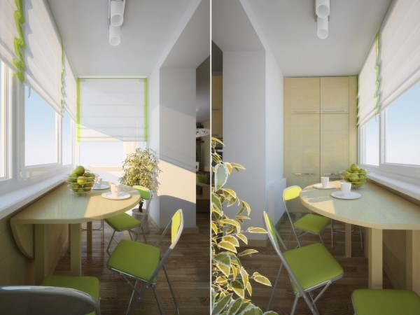 Comment équiper un balcon: conception d'un balcon pour la salle à manger