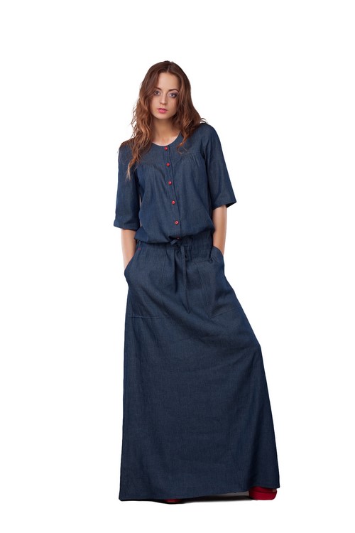 En règle générale, les robes longues en jean 2025-2026 seront présentées dans le style d'une ligne, coupe droite, mais il est également possible de voir de nouveaux modèles avec une jupe en jean pleine.