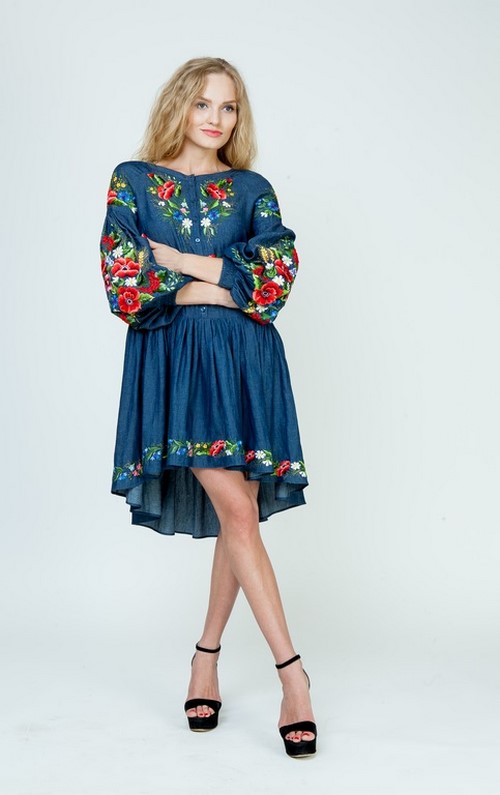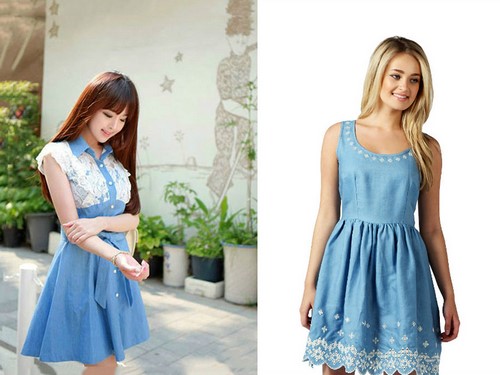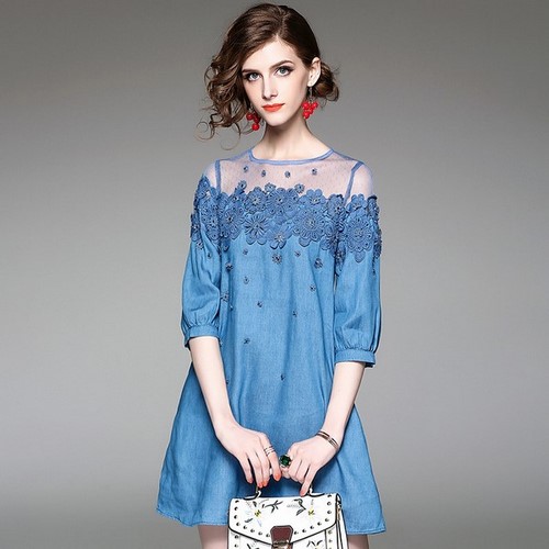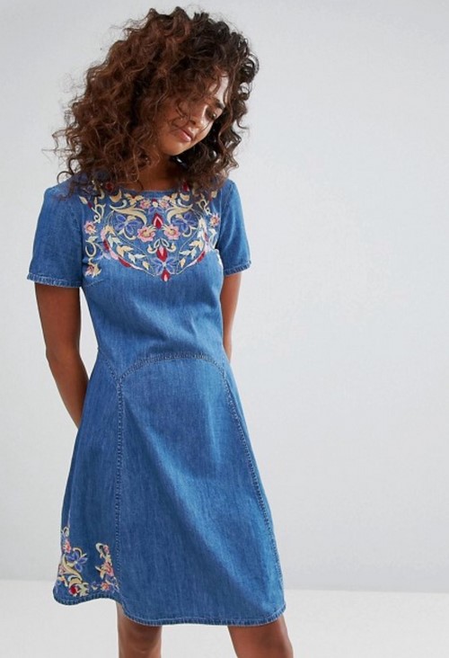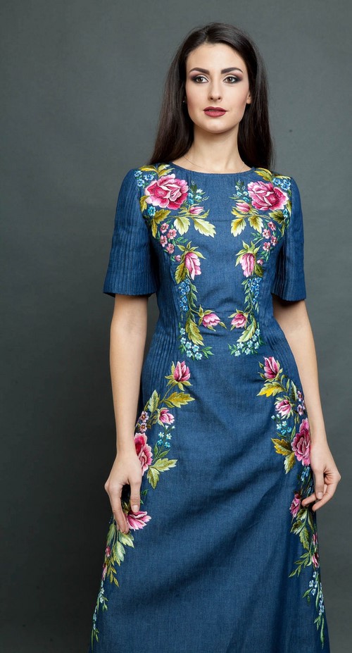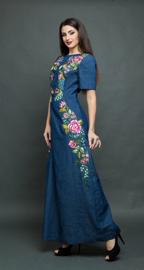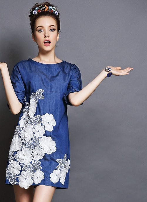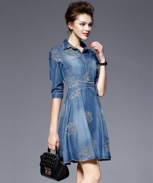 Les robes en denim luxueuses avec des broderies semblaient être à la mode, comme s’étalant sur toute la robe avec des fleurs lumineuses ou de couleur denim, des feuilles, des ornements abstraits qui plairaient à la fois aux jeunes beautés et aux femmes spectaculaires.