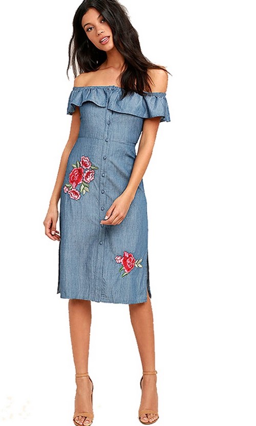 Les nouveautés des robes midi en denim seront décorées avec de la broderie, de la dentelle, de beaux boutons et des bretelles stylées, ce qui vous permettra de choisir une robe qui plaira à toute beauté.