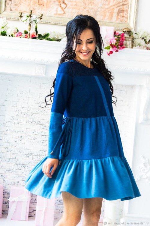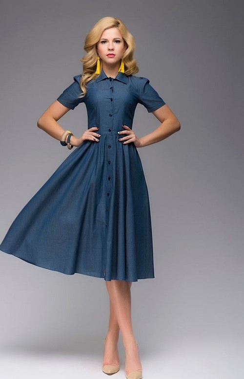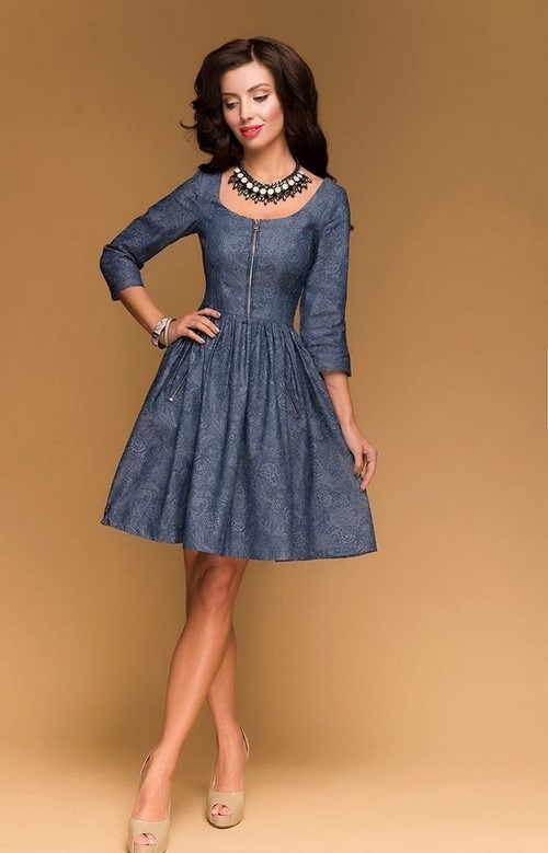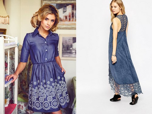 En raison des caractéristiques du tissu, les robes en denim à la mode s’adaptent bien à la silhouette, conservent parfaitement leur forme, ce qui est un facteur indispensable lors du choix des vêtements pour femmes dures et futures mères.