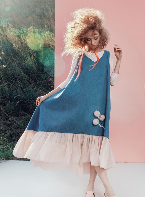 Sarafan denim magnifique peut être porté indépendamment, ou peut être combiné avec des T-shirts, des hauts, des chemises. Tout dépend du style et de votre imagination.