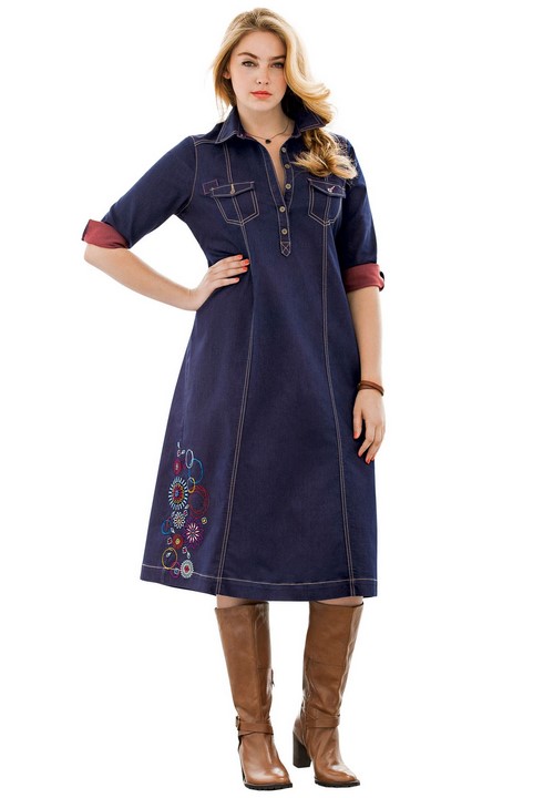 Les robes en denim pour les femmes en surpoids et les femmes enceintes seront réalisées sous la forme de robes longues de longueur moyenne et maximale.