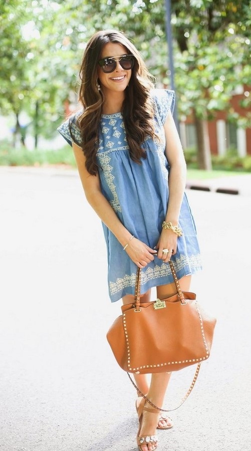 N'oubliez pas un accessoire tel qu'un sac à main. Les robes en jean peuvent être rafraîchies à l'aide d'un sac à main de petite et moyenne taille dans des tons marron, beige, gris ou brillants, en harmonie avec les tons des chaussures ou en complément de tout autre élément de l'image.