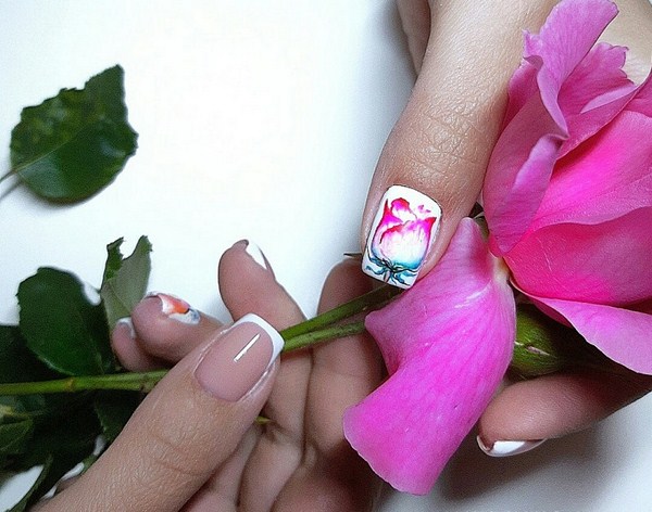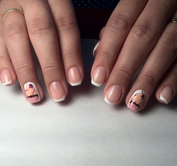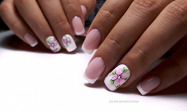 Une manucure française romantique ou une manucure française saisonnière printemps-été 2025-2026 sera excellente avec des fleurs, des portraits de filles, des impressions éclatantes - géométrie, abstraction, feuilles, desserts délicieux.