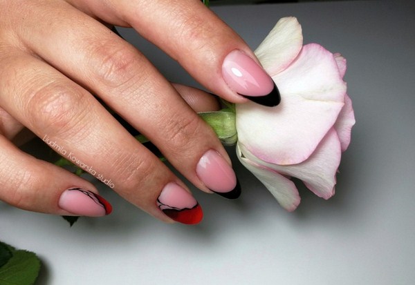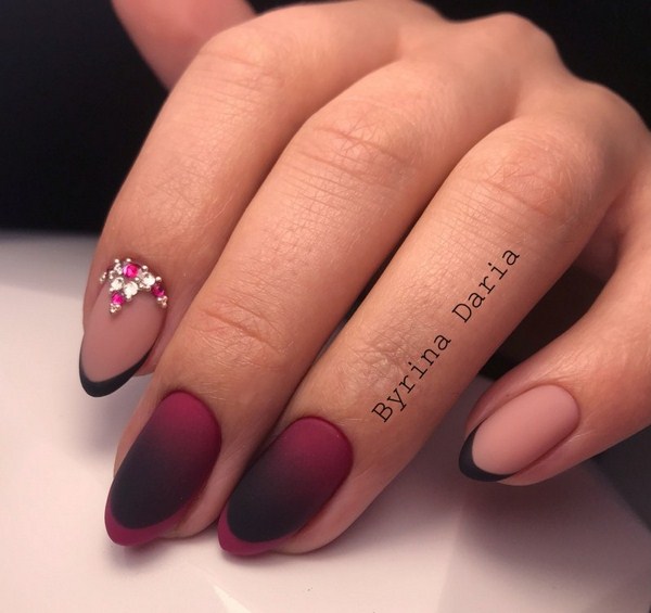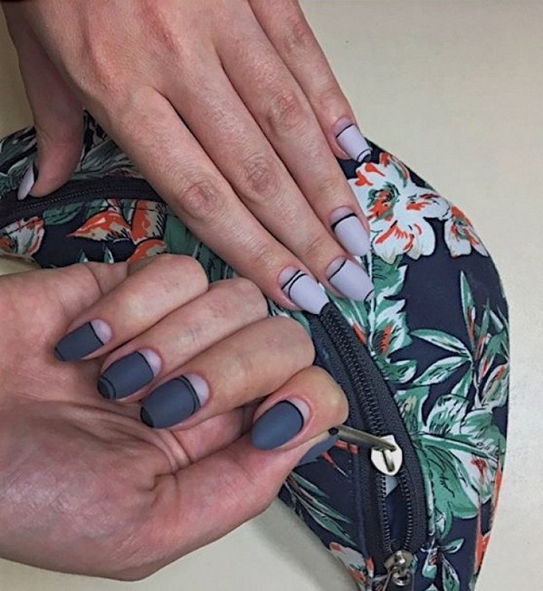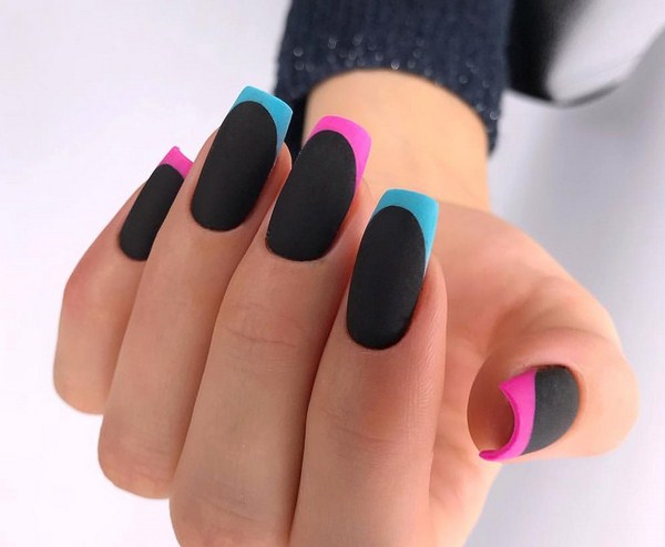 Les variations des différentes directions de l’art de la manucure à la mode offrent de nouveaux types de couleurs françaises, noires, mates, en tandem avec des lunes surlignées, ainsi qu’une forme inhabituelle de «sourires» qui ont l’air si frais et si nouveau dans la manucure française bien-aimée sur les ongles de différentes formes .
