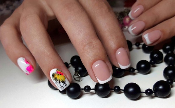 Conception des ongles français avec dessins.