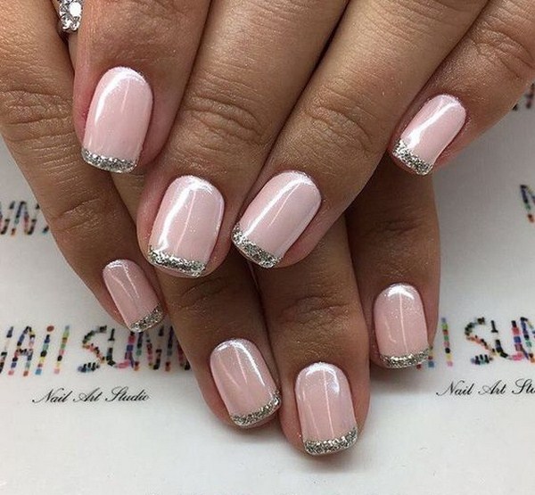 Manucure française avec des étincelles.