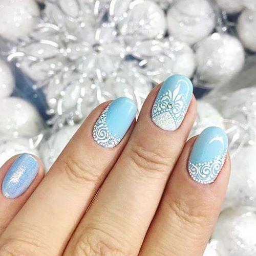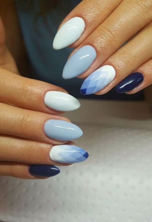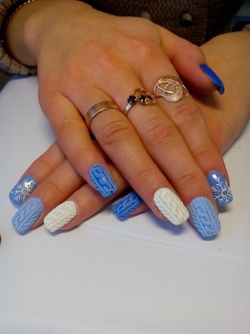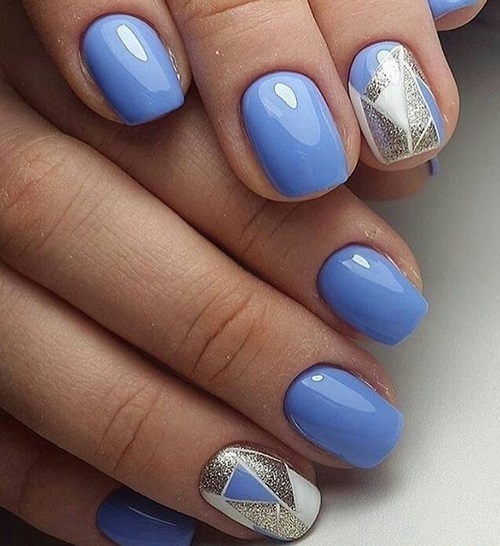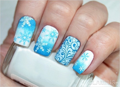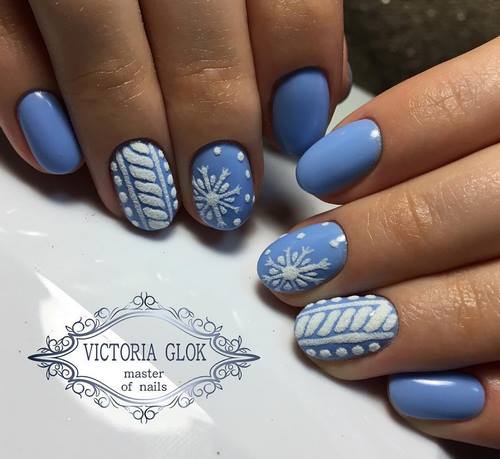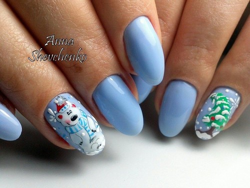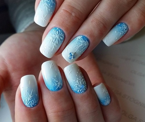 Un plus calme, mais aussi incroyablement attrayant, sera le dessin de l’ongle bleu pour la saison hivernale, quand le bleu sera en harmonie avec le blanc, le rouge, le bleu, le doré et le vert, réalisés dans les meilleurs exemples de nail art d’hiver.