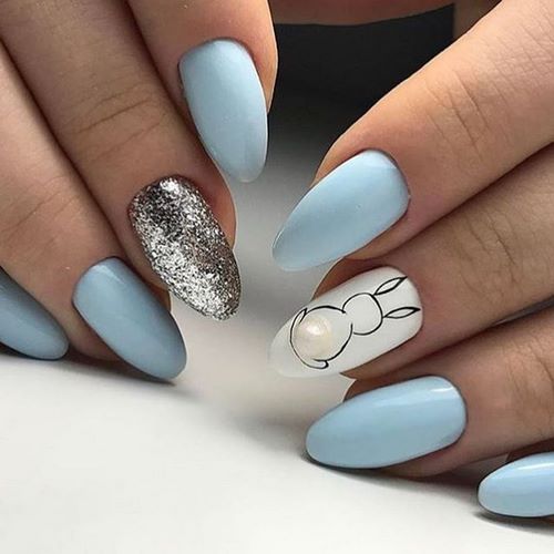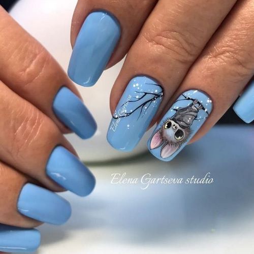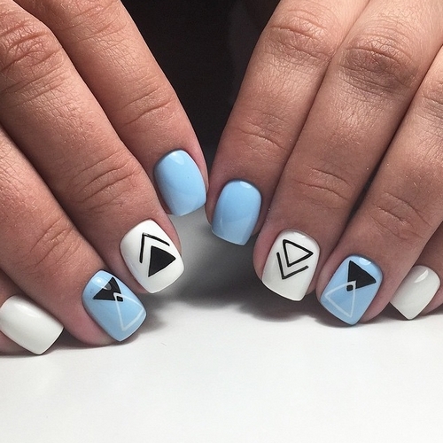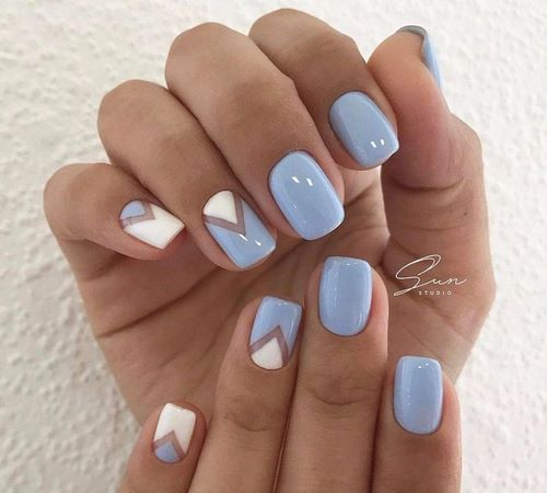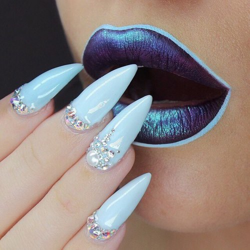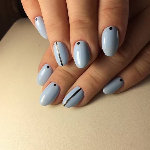 Pour les ongles acérés, une manucure bleue est également appropriée, de préférence dans un design retenu ou monochrome.