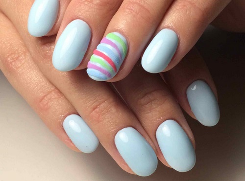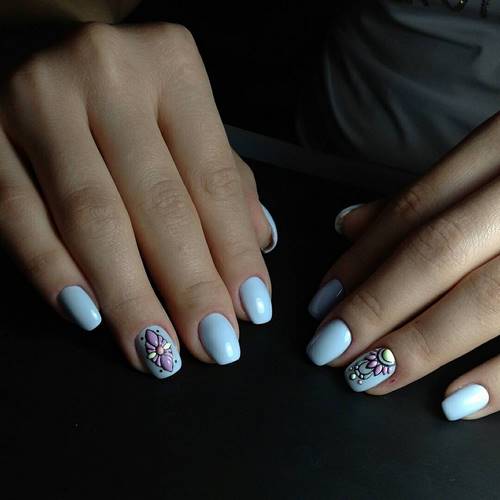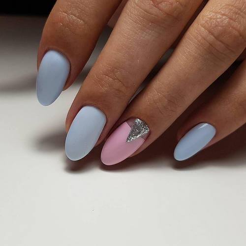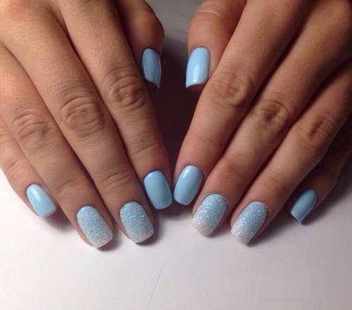 Blue Manicure 2025-2026 représente une palette de couleurs pastel. Toute nuance de pastel a l'air noble, si vous la combinez avec des cailloux et leur scintillement sans faille.