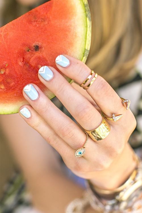 Vaincra les fashionistas et une manucure bleue 2025-2026 avec un joli cadre, "Negative Space Nails", qui sera particulièrement utile dans les prochaines saisons.