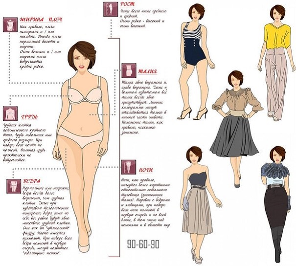 Nous vous dirons aujourd’hui comment choisir des vêtements en fonction du type de silhouette, comment s’habiller correctement en fonction du type de silhouette et quels vêtements conviendront à l’un ou l’autre type de silhouette, en fonction des caractéristiques du physique féminin.