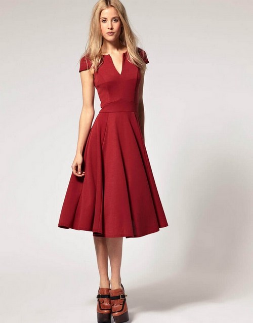 Un autre style qui a reconstitué les robes de cocktail à la mode - la dernière en 2025-2026 sont les robes de soirée avec une jupe évasée.