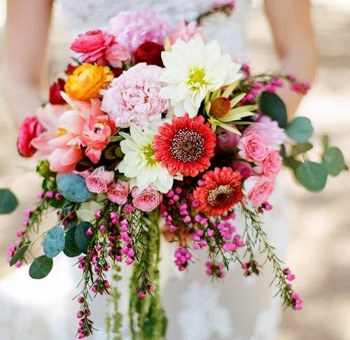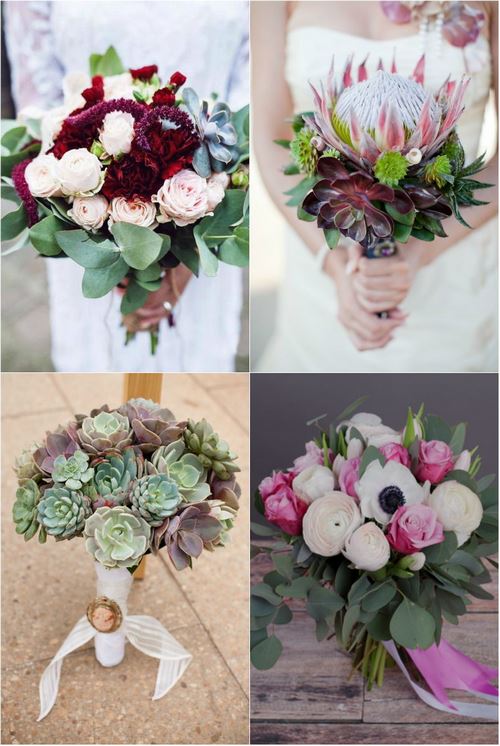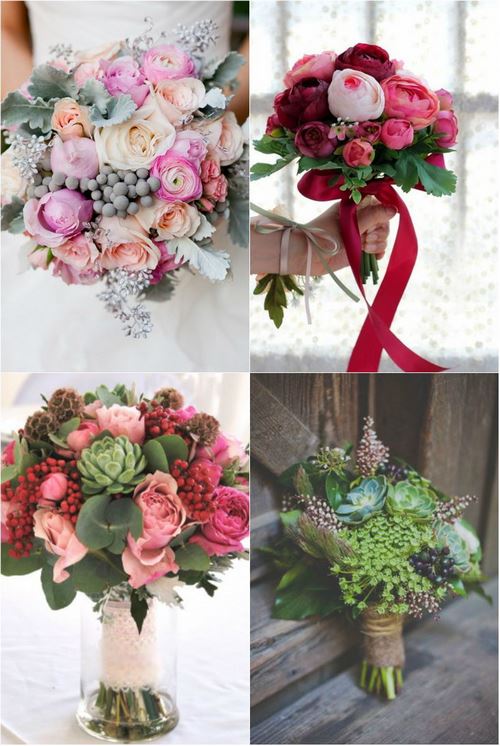 De beaux bouquets raviront l’élégance des plantes succulentes, des raisins sauvages, des pivoines et des petites roses, des types de fleurs aux couleurs éclatantes.