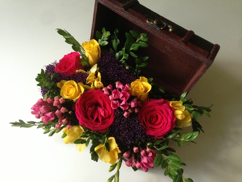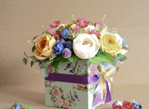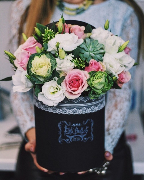 Les meilleurs bouquets peuvent être présentés dans des boîtes à chapeau. Mais ce n’est pas la limite ... Mais qu’en est-il des paniers, des tasses à thé ou des théières, un petit seau.