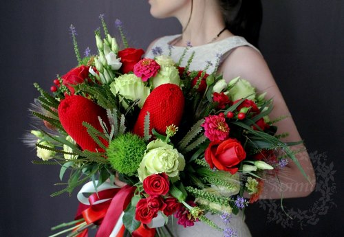 Bouquets à la mode 2025-2026 composés de coquillages, de petits et grands boutons, de fleurs tricotées et artificielles, de mélanges de fruits, de bouquets sucrés et de décorations - ces idées et d’autres avec des notes d’innovation et de créativité conqueront toute femme avec votre extraordinaire approche pour choisir un bouquet.