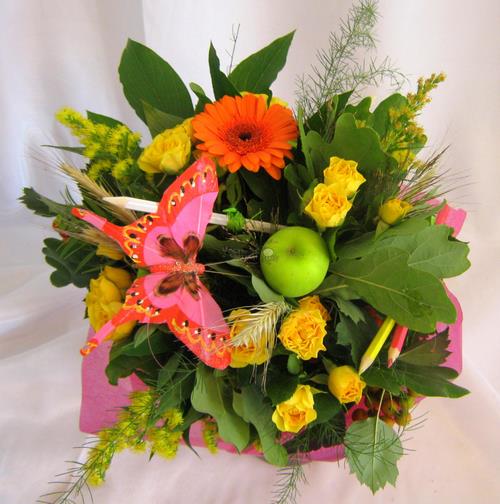 De beaux bouquets 2025-2026 avec des crayons, que les fleuristes ont inventés spécialement pour les vacances scolaires, ont l'air créatifs.