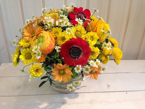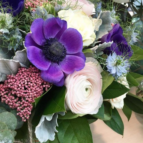 Pendant la saison hivernale froide, les fleuristes proposent aux clients 2025-2026 des bouquets de composants tels que des anémones, des renoncules, des roses, des tulipes, ayant reçu le statut de toutes saisons, des jonquilles, des camélacs, des amaryllis, des pivoines, des plantes succulentes, etc.
