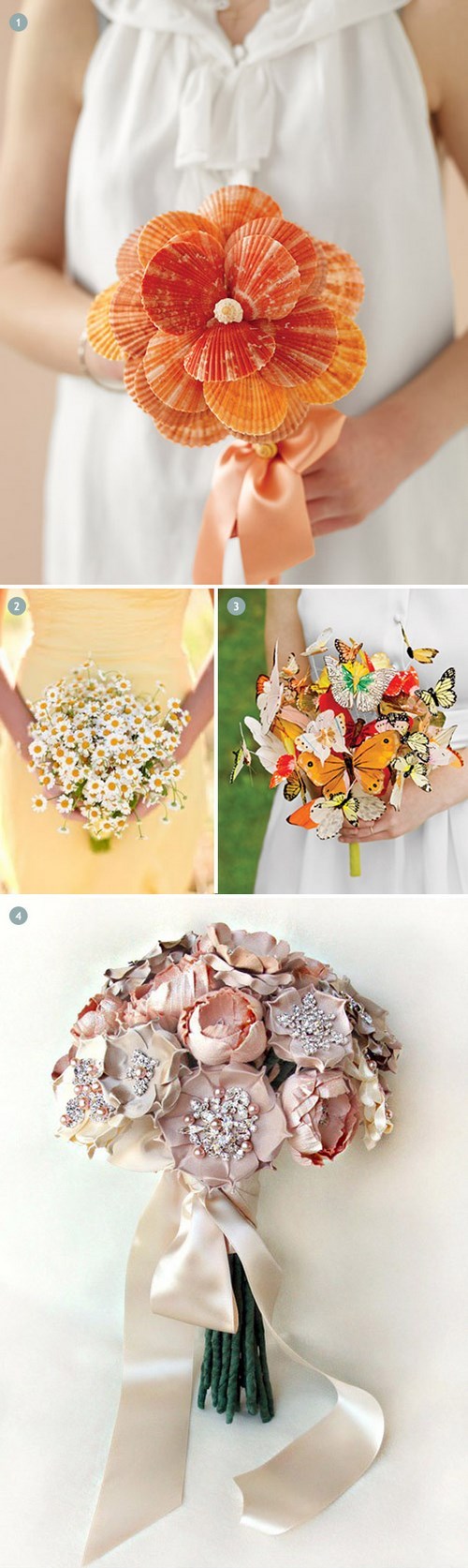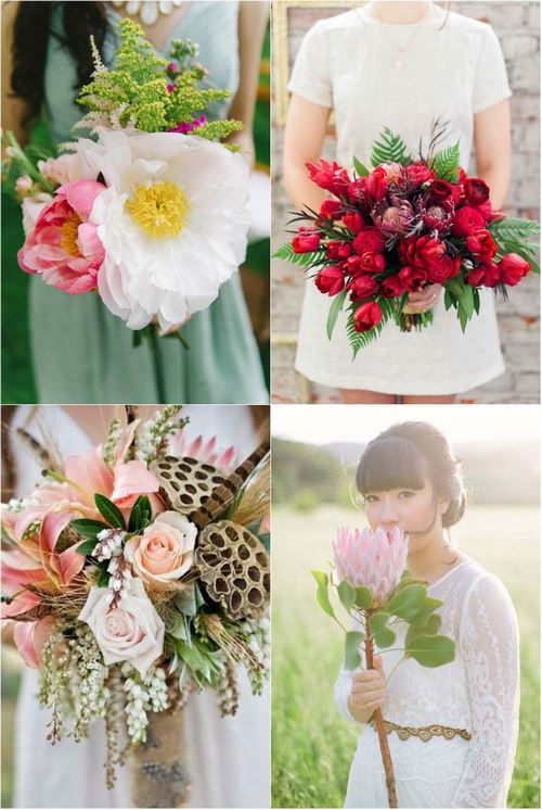 Bouquet de mariée n'a pas de normes. Il peut être très différent, décoré avec des brindilles, des fruits et des baies, des combinaisons de fleurs multicolores, des plantes exotiques.