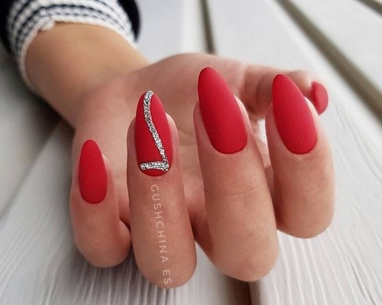 De beaux ongles rouges dans les variations longues et envahies sont effectuées sur la forme amygdala et ovale. La forme carrée est plus appropriée si vous aimez les ongles rouge moyen.
