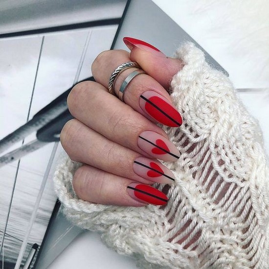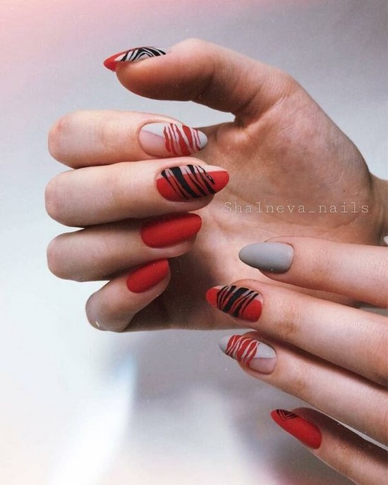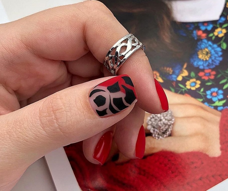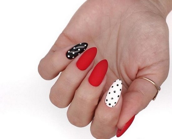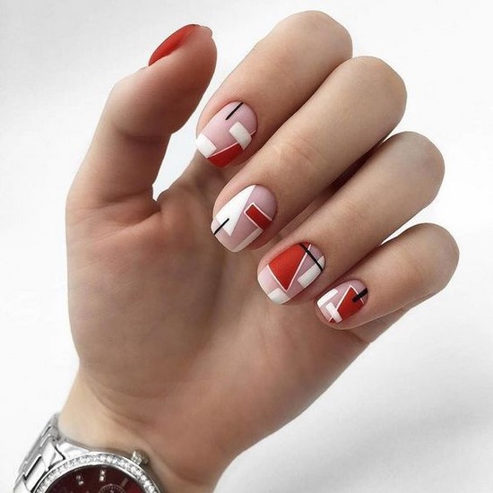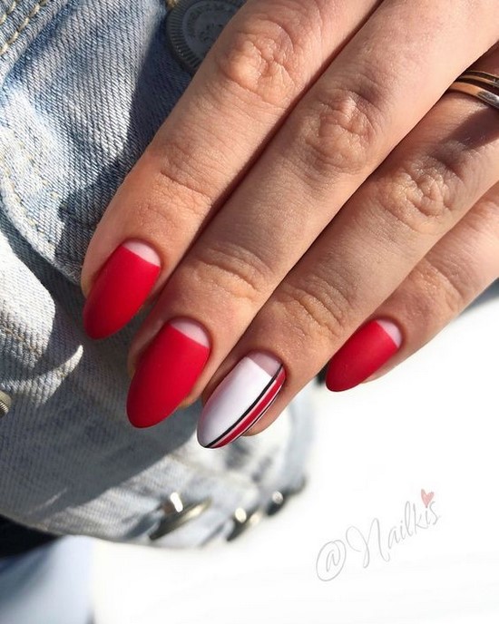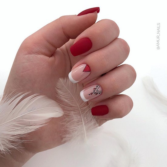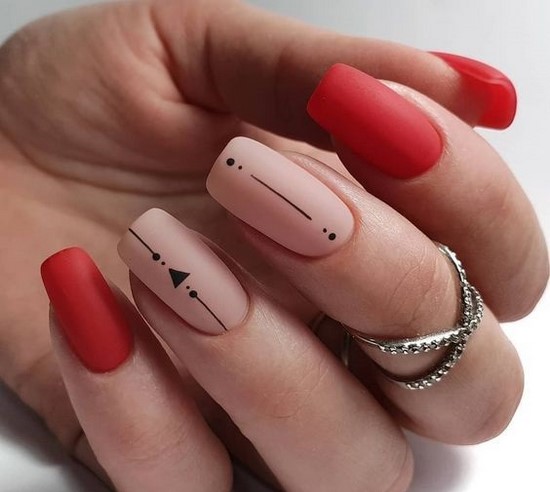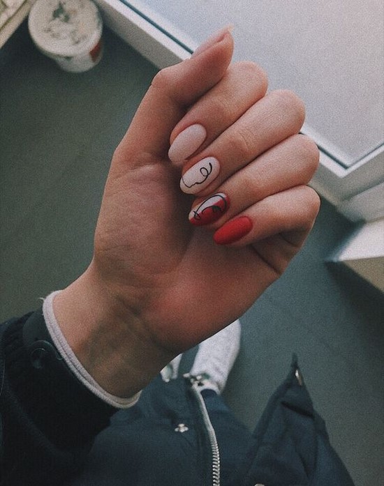 Et tout cela grâce au dosage correct du rouge dans le nail art à la mode. Vous pouvez donc essayer la manucure rouge combinée avec un espace négatif ou beige, huile, citron, taches blanches.