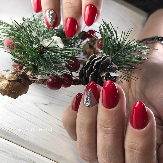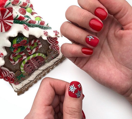 La manucure rouge d’hiver est magnifique et avec des motifs saisonniers, qui peuvent être réalisés à l’aide de curseurs, estampage, pochoirs.