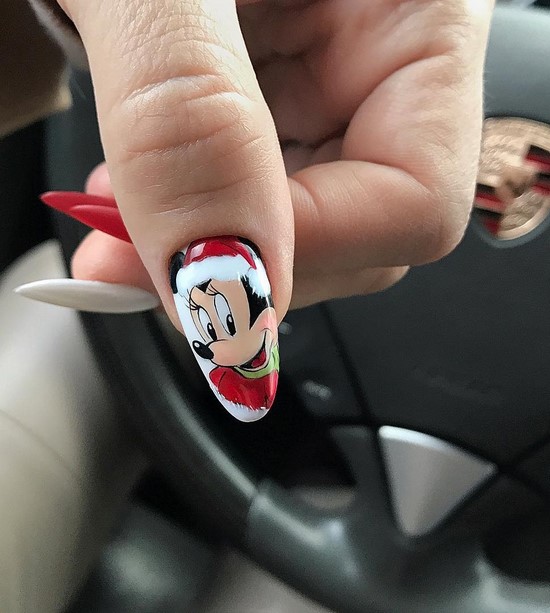 En hiver, les maîtres nous préparaient une manucure rouge festive, qui ravira leur maîtresse avec l'ambiance du Nouvel An sous forme de motifs d'hiver, de flocons de neige et de héros du Nouvel An.