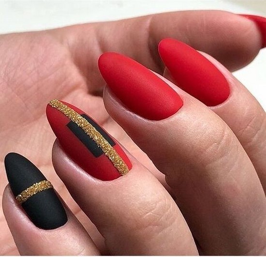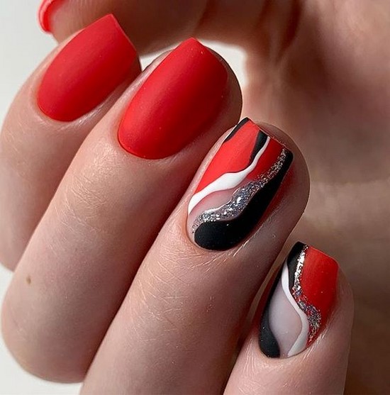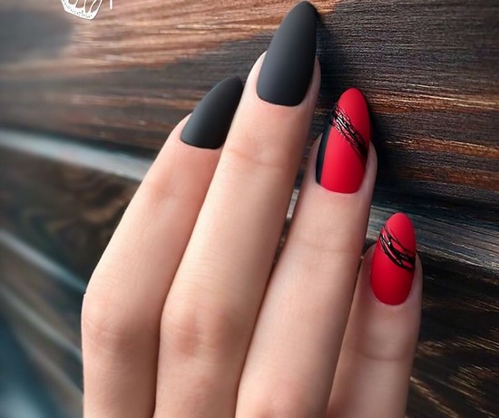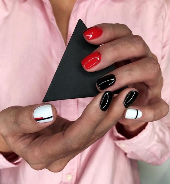 Vous aimerez aussi les ongles rouges avec des combinaisons contrastantes de vernis gel, où il y aura un vernis gel noir, vert, blanc, or, argent, etc.