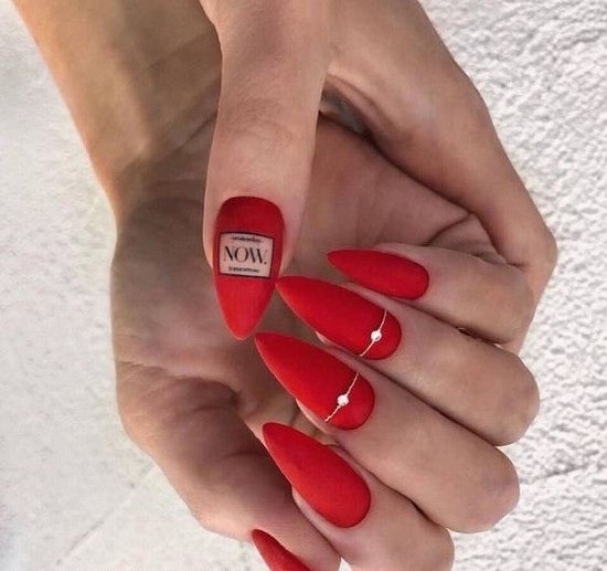 Une manucure rouge pointue pour les ongles longs et prolongés est un exemple spectaculaire d'art de la touche d'art, peu importe son design, car elle est audacieuse, choquante et cool.