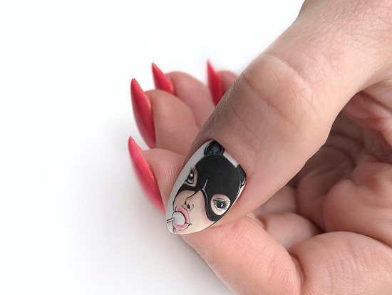 La technique eye see you améliorera également la conception monotone d’ongles rouges mats ou brillants avec des notes conceptuelles lorsque de jolis portraits de filles apparaissent sur un ou deux ongles, de femmes, comme si elles venaient d’être peintes par un artiste, de silhouettes surprenantes de féminité et de sensualité.