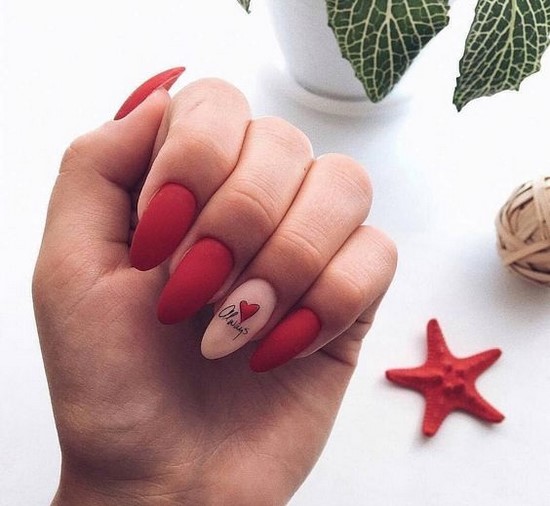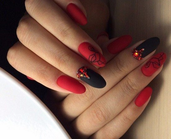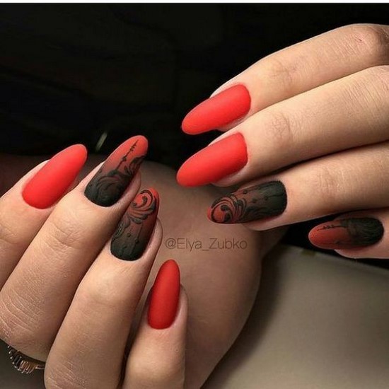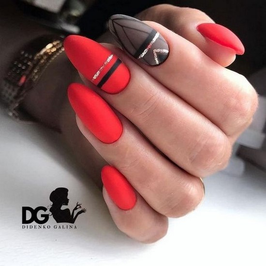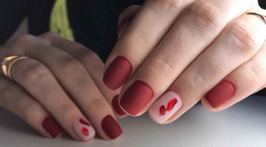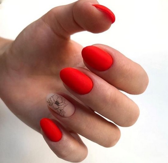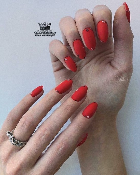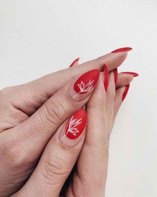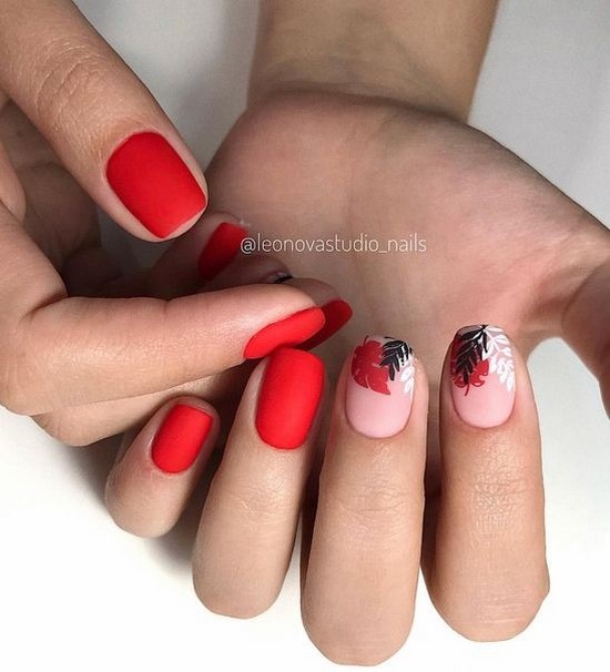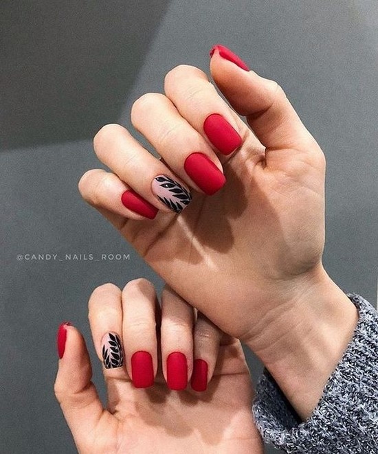 En automne, choisissez des ongles rouges plus doux et plus feutrés, avec un dessus mat, car une finition mate permet de créer un design tout à fait inhabituel et original.