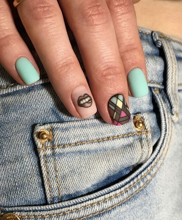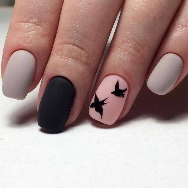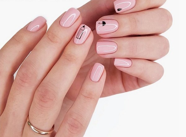 Le pastel est harmonieux avec les couleurs vives et les couleurs foncées, car des motifs sombres ou clairs sous forme de fleurs, de rayures, de pois, de toiles d'araignées chatoyantes complexes, une version délicate à la française contribueront à accentuer les ongles clairs.