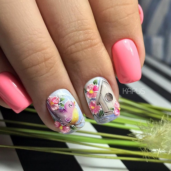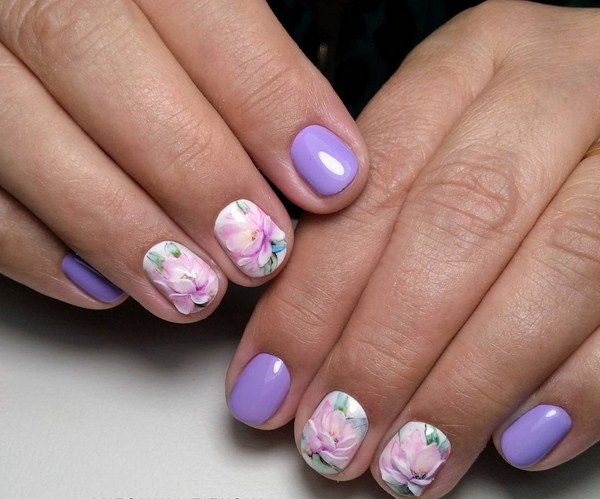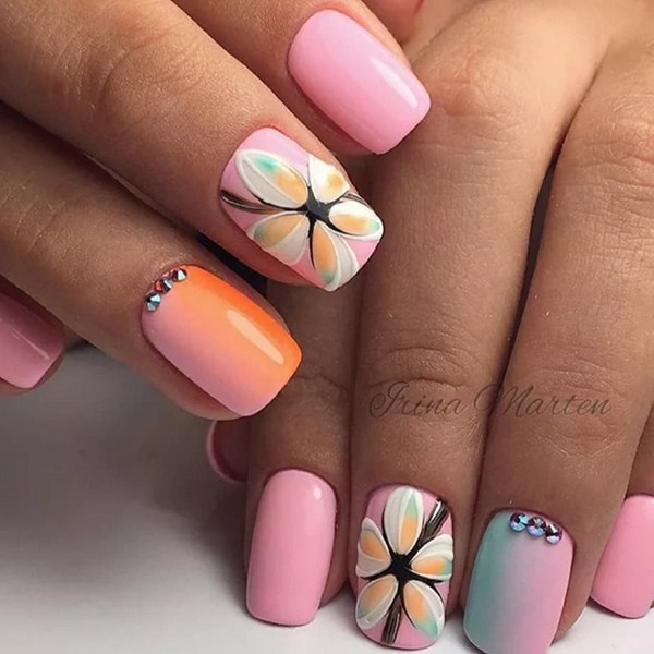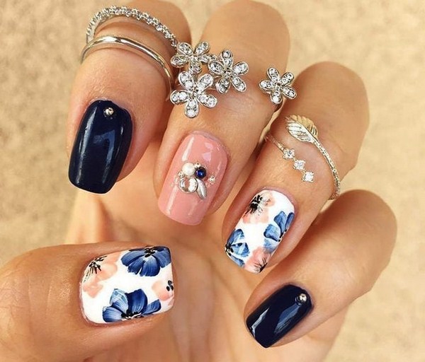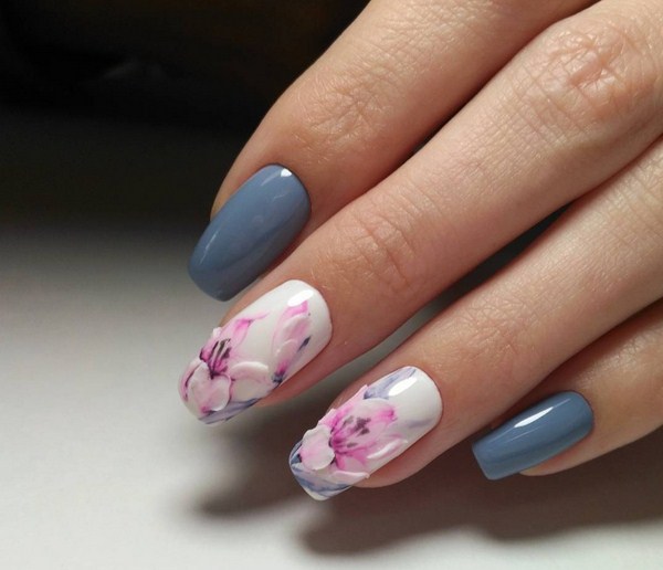 Superbe manucure florale 2025-2026: manucure tendance avec différentes couleurs sur la photo