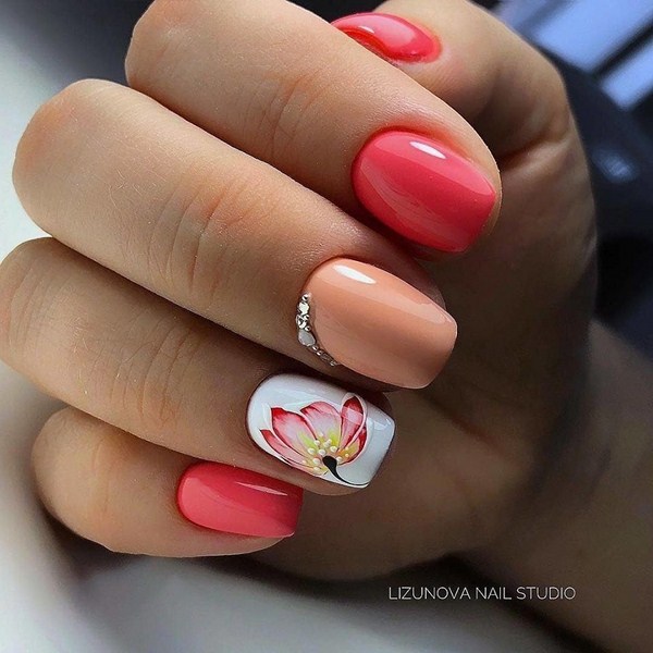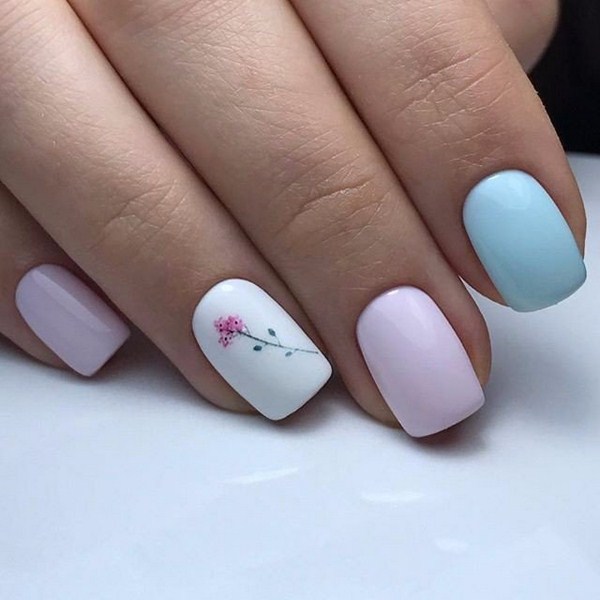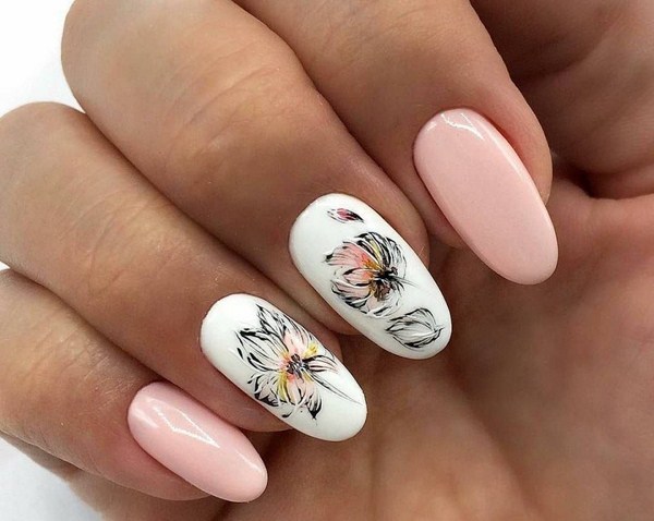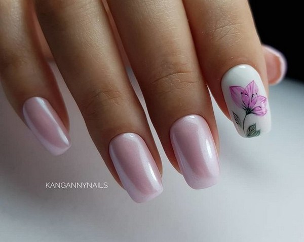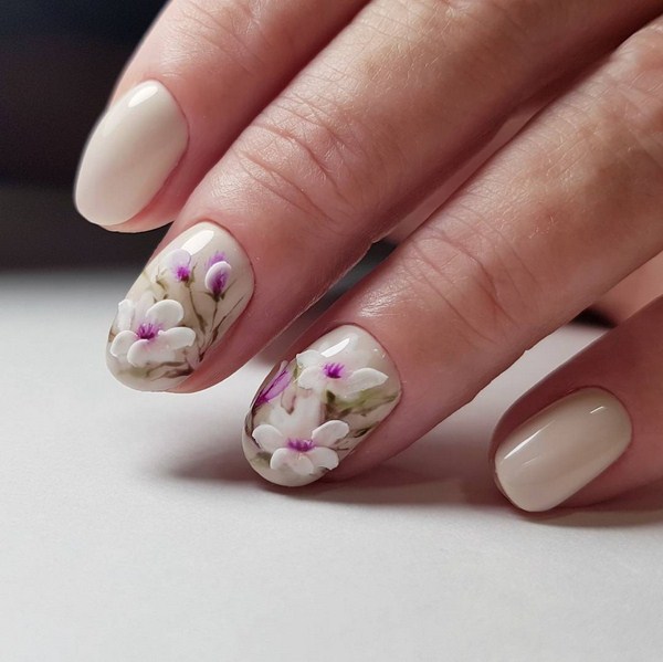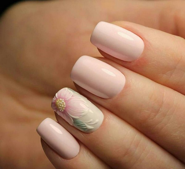 Vous pouvez créer un nail art floral étonnant dans un style minimaliste avec d'agréables couleurs pastel et nude et décoré avec une ou deux fleurs.