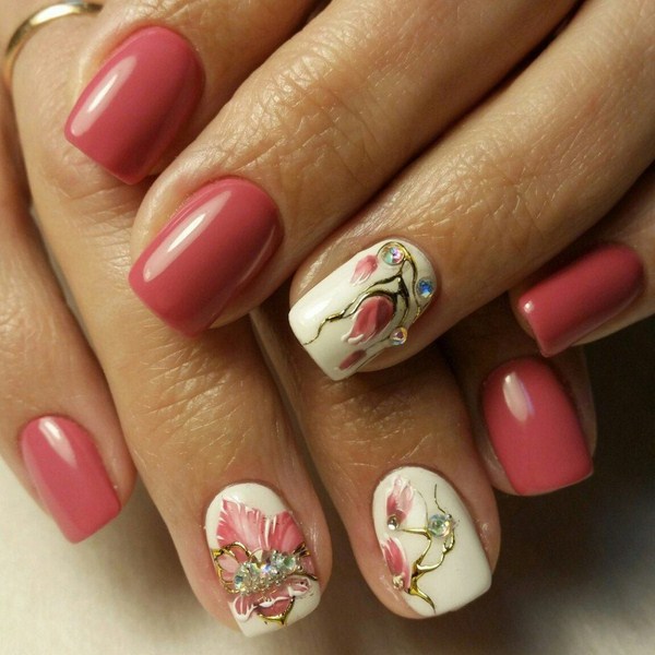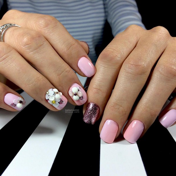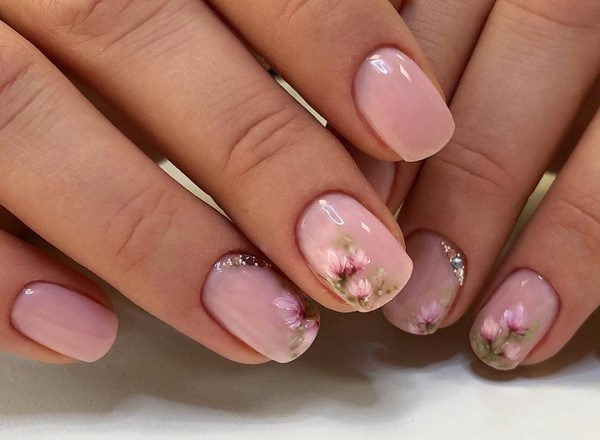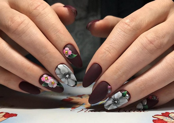 Le nail art Peerless avec des fleurs est pertinent toute l'année - et au printemps comme à l'été, ainsi qu'en automne et en hiver, vous pouvez réaliser un nail art laconique et élégant avec des fleurs dans une excellente représentation.