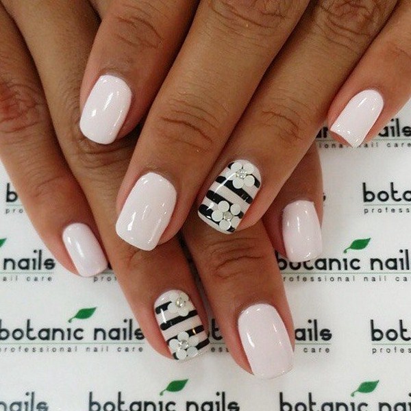 Manucure minimaliste étonnamment douce avec des fleurs.